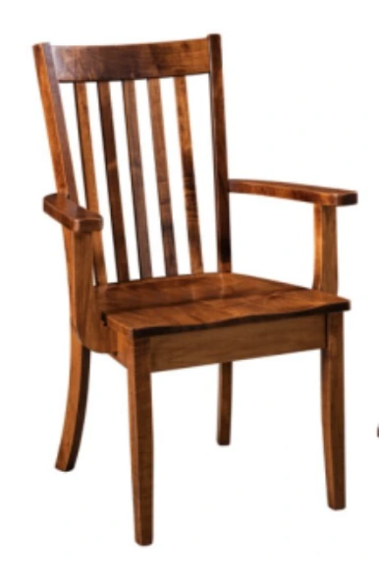 Features handcrafted maple construction with a classic slat-back design and supportive armrests. Customizable in multiple wood finishes and upholstery options, it blends traditional craftsmanship with personal style. Ideal for dining settings, it offers durability, comfort, and timeless appeal from the Amish Essentials collection.Read More