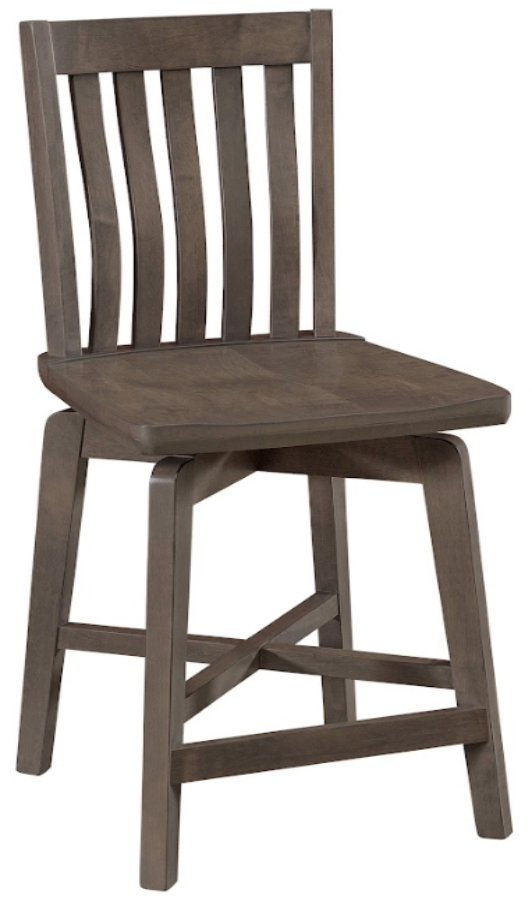 Is a solid maple counter-height seat showcasing Amish craftsmanship. It features a slatted back with elegant transitional styling, smooth swivel action, and is customizable in ten Amish stain finishes sealed with durable catalyzed varnish. A timeless, heirloom-quality addition to any kitchen or bar.Read More