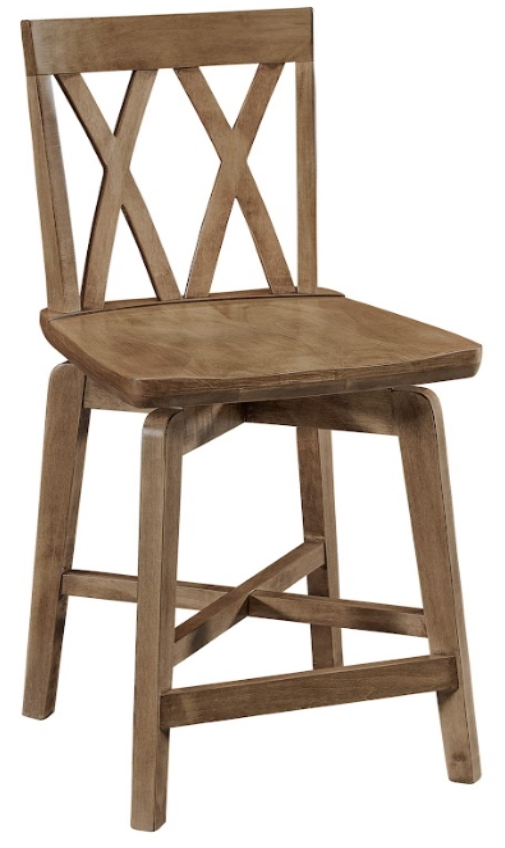 Is a solid maple counter-height seat handcrafted by Amish artisans. It features a classic X-back design, smooth swivel action, and ten Amish stain finishes sealed with a durable catalyzed varnish. Elegant, personalized, and built to last.Read More