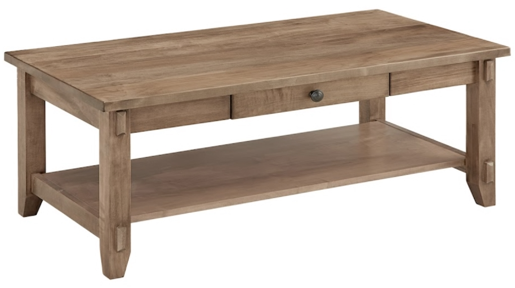 The Archbold Furniture customizable maple large coffee table is a solid maple occasional table with a spacious rectangular top and sturdy lower shelf. Featuring two smooth-gliding, English-dovetail drawers and catalyzed conversion varnish, it combines timeless style with storage and durability.Read More