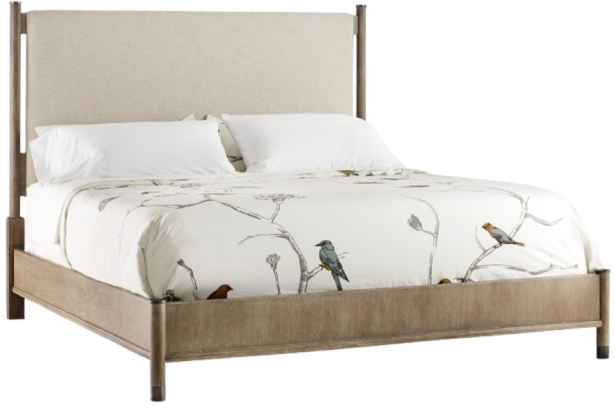 Chic and modern, the Affinity California King bed contrasts a headboard upholstered in Kurtz linen with the sides and footboard in a greige sand-blasted finish on tactile quartered oak veneers.Read More