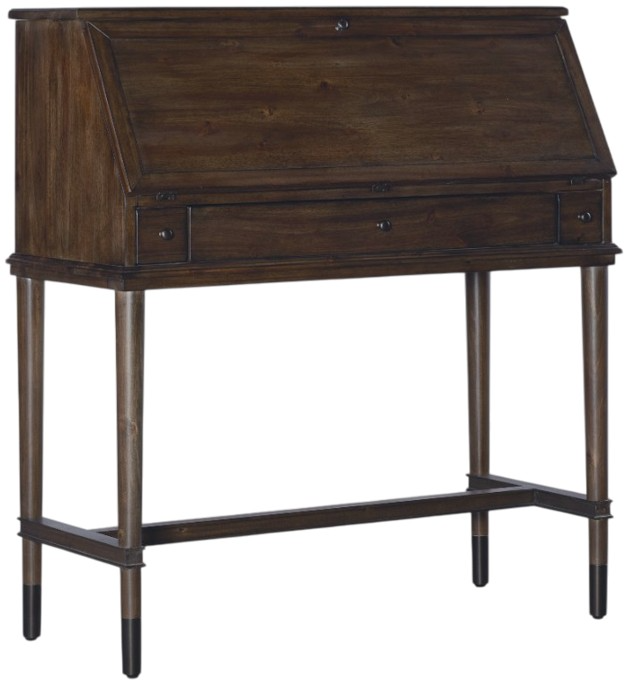 A retro, nostalgic silhouette is updated for today in the Commerce and Market Secretariat secretary desk. Crafted of clean acacia solids in a dark natural wood finish, it features a drop-down work surface, two pullout supports, one center drawer, two tray drawers inside the drop-front and two removable wood shelves.Read More