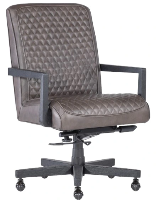 High-tech function blends with homespun comfort in the Shadow executive chair, featuring a quilted leather design on the seat and back, along with adjustable height, swivel motion and casters. The wood frame is finished in a dark gray, and the Ankur dark brown upholstered cover is a semi-aniline top-grain leather.Read More