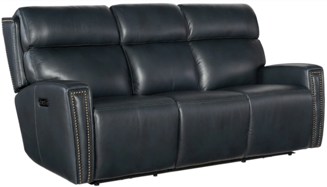 The modern silhouette of the Ruthe zero gravity power recline sofa has vintage inspiration, including the fresh twist on a wing chair profile and traditional pewter nailhead trim. Featuring a casual bustle-style back, power headrest and a USB port, the ruthe is covered in the salvo denim semi-aniline top-grain leather.Read More
