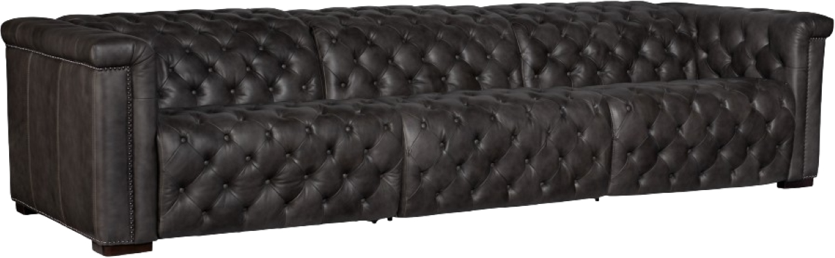 The end seating units transform to recliners with a smooth power control button, offering exceptional comfort. Savion blends classic elegance with modern flair, combining traditional button-tufted tailoring with a sleek profile back. The beautiful Bellagio Gravel leather cover is finished for stain protection and is hand wiped, giving each piece authenticity and sophisticated appeal. Hooker Furniture Upholstery is a designer-inspired collection of upscale leather seating that includes versatile reclining chairs, modern-day reclining sofas, eclectic club and artisan accent chairs, as well as a selection of executive desk chairs for the home. Designed and curated to appeal to a variety of style tastes, each piece from Hooker Furniture Upholstery is meticulously crafted in a unique selection of textures and hues.