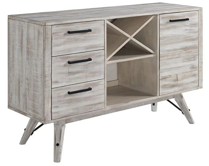 The Modern Rustic collection is constructed from solid acacia with select hardwoods. Offered in a weathered white finish with metal accents. Crafted with durability in mind, it enhances entertaining experiences while adding a refined, organized touch to any dining space.Read More