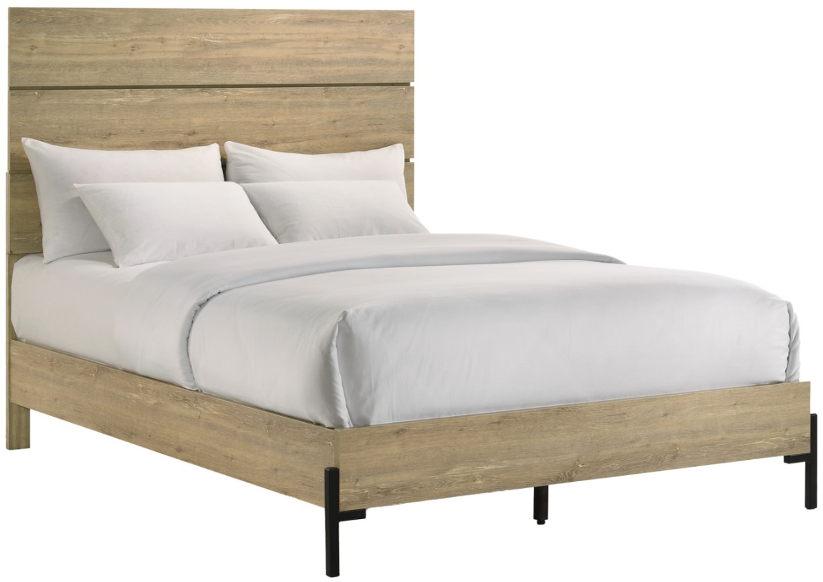 The modern Newhall melamine bedroom group features a perfect balance of clean lines, chic styling and practicality. The group features a light vintage oak melamine with metal legs and wide drawer pulls with a dark burnished black finish.Read More