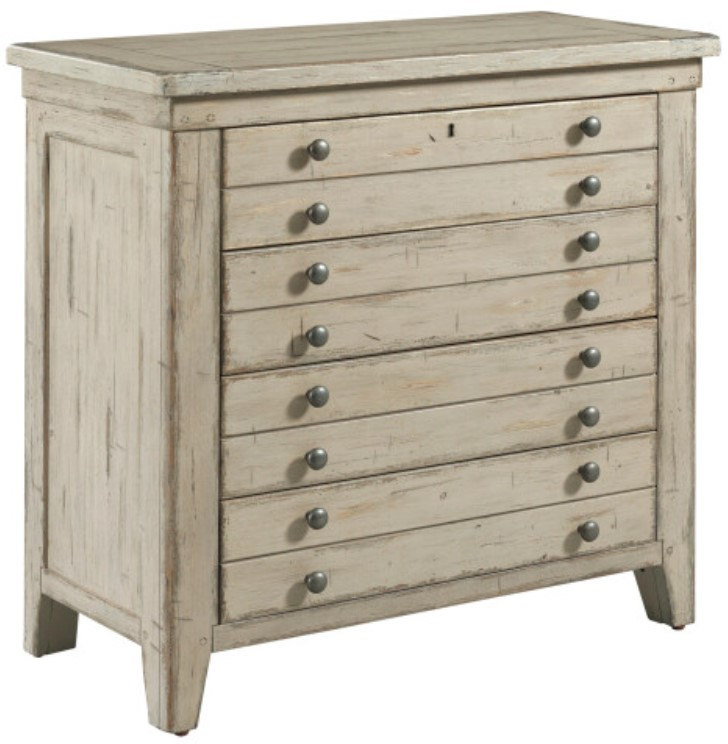 The Kincaid® Acquisitions Cameo Brimley Map Bachelor’s Chest blends timeless charm with distinctive detailing. Showcasing a map-inspired surface design in a warm cameo finish, it offers ample drawer storage and refined hardware accents. This piece adds character and functional elegance to any bedroom or living space.Read More