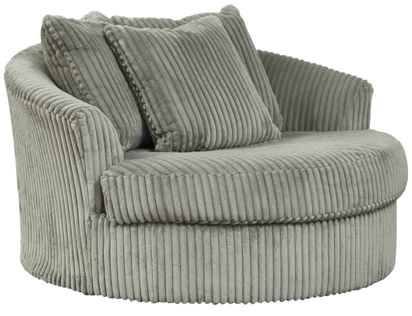 Plush and posh. Showcase your eye for on-trend texture with the statement-making cord upholstery of this oversized swivel accent chair. Its stunningly soft fabric entices in a warm neutral hue, complementing contemporary color palettes.Read More