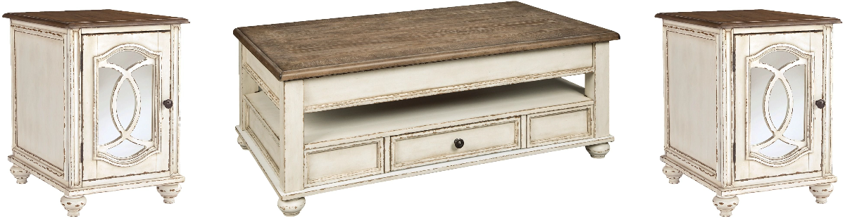 3-piece set: includes lift top coffee table and 2 chairside end tables