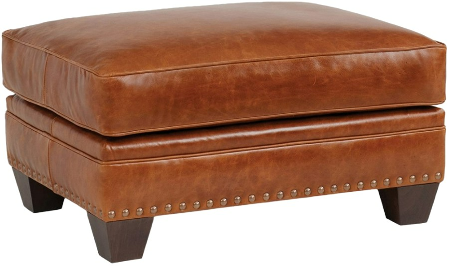Introducing the 235 Leather Ottoman, adorned with a stylish nailhead trim accent and elegantly complemented by exposed wood legs. Crafted with American-made custom upholstery and available in a variety of wood finish options, this ottoman adds a touch of sophistication to any living space.Read More