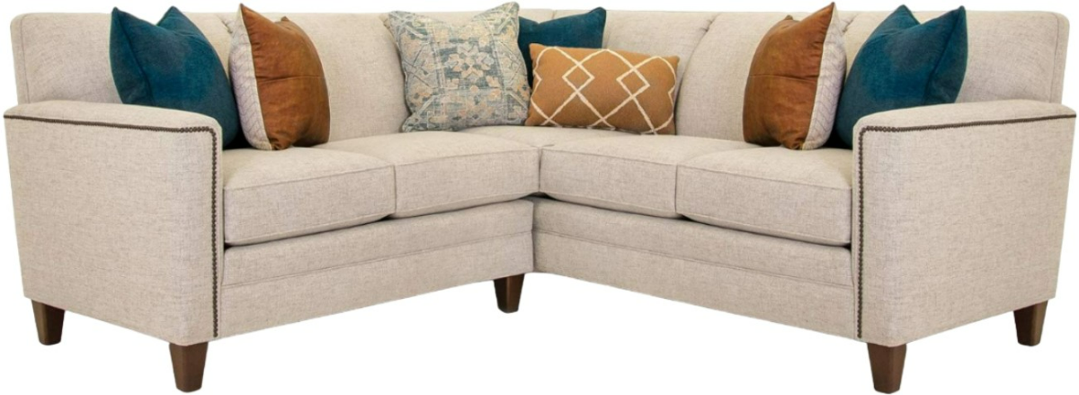 The Smith Brothers Customizable 3122 2-Piece Sectional offers comfort and style with its plush cushions and tailored design. Available in various fabrics and finishes, it adapts to any décor, providing a versatile seating solution for living rooms of all sizes.Read More