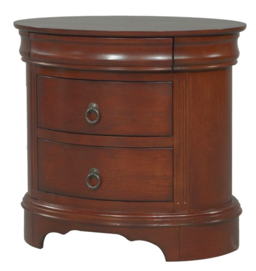 The Renaissance Cherry Nightstand is a 30" 3 drawer nightstand in an oval shape. There is a hidden drawer in the top molding.Read More
